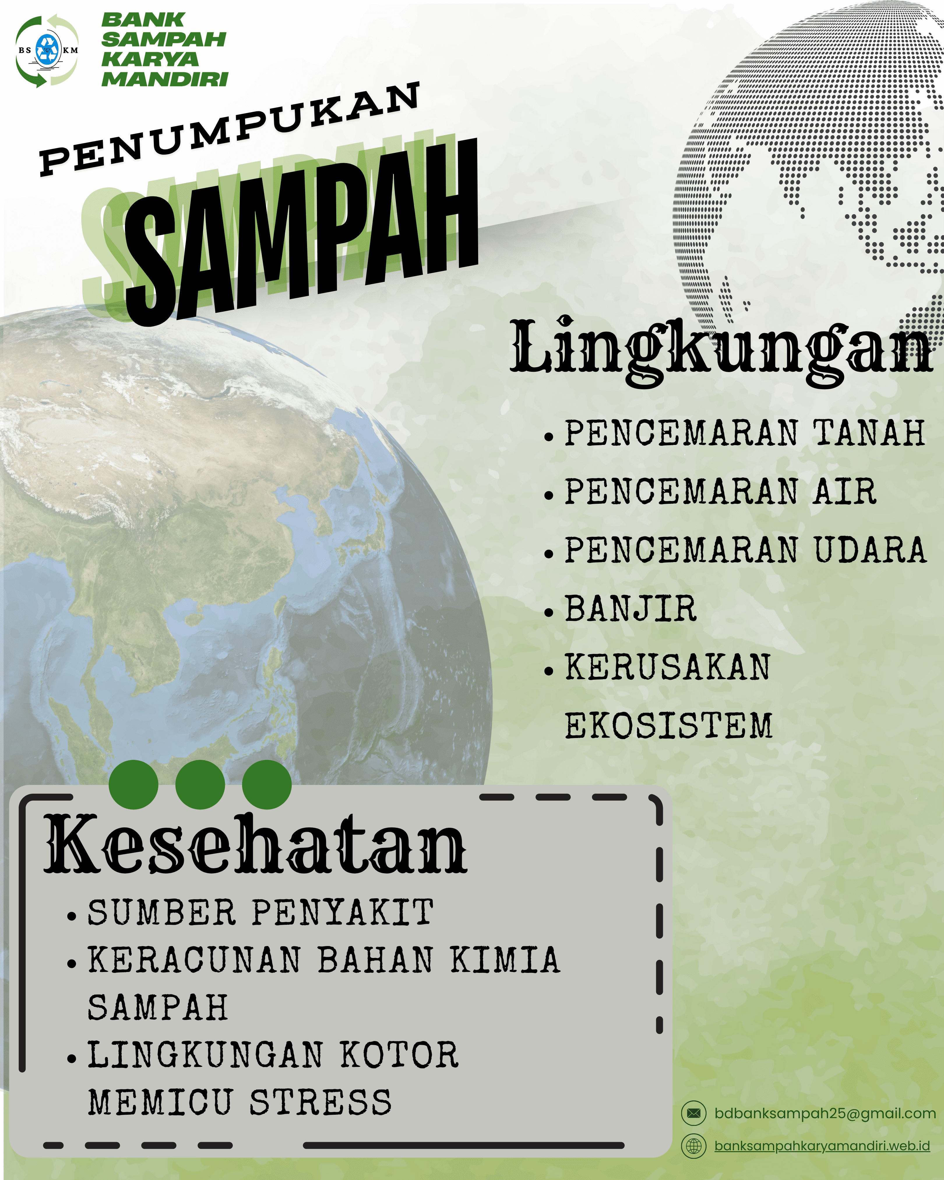 Bank Sampah Karya Mandiri adalah solusi bijak pengelolaan sampah berbasis masyarakat. Kami mendidik, mengedukasi, dan mendampingi warga untuk memilah, menabung, dan mengolah sampah menjadi sumber daya yang bermanfaat.